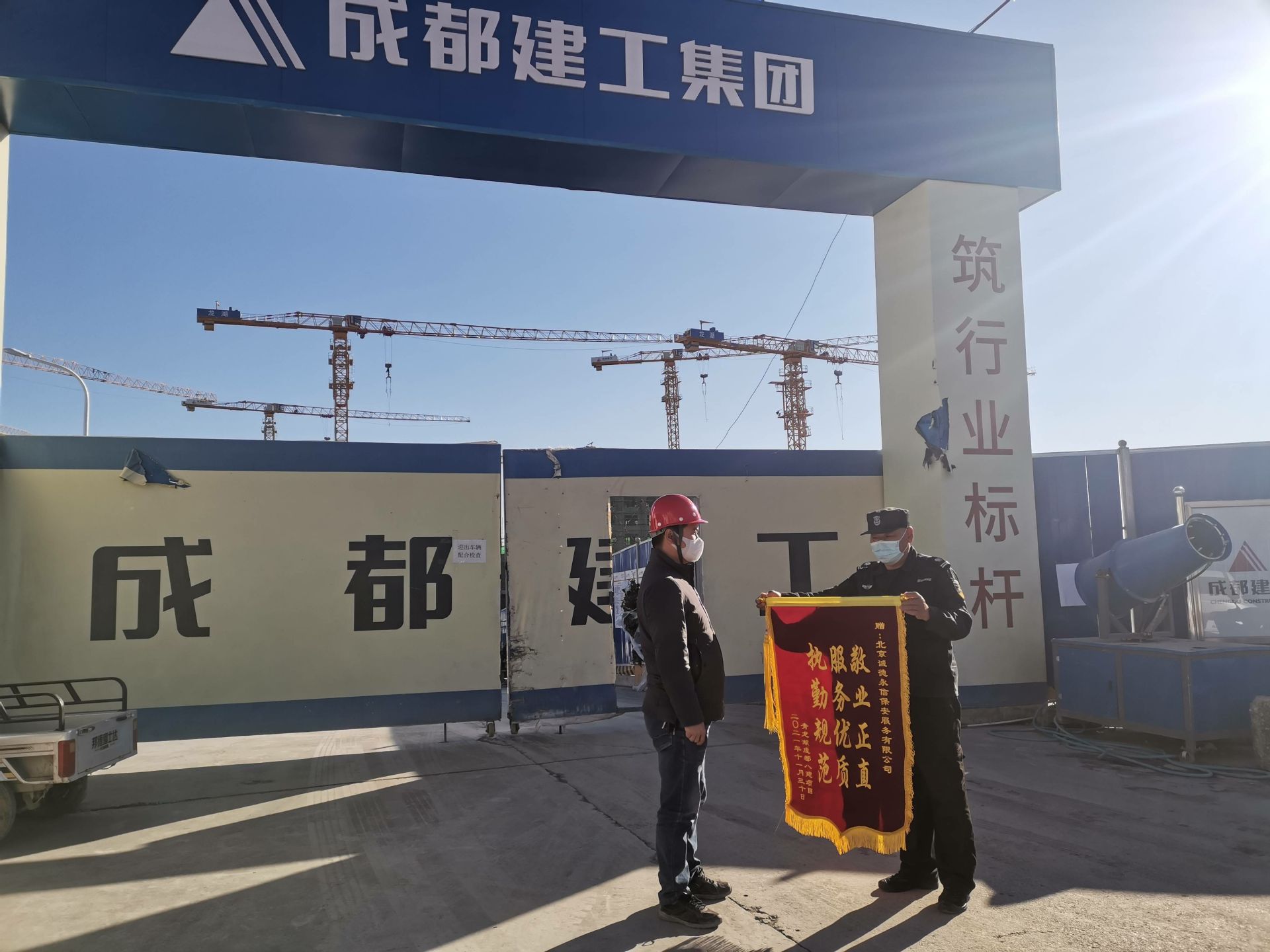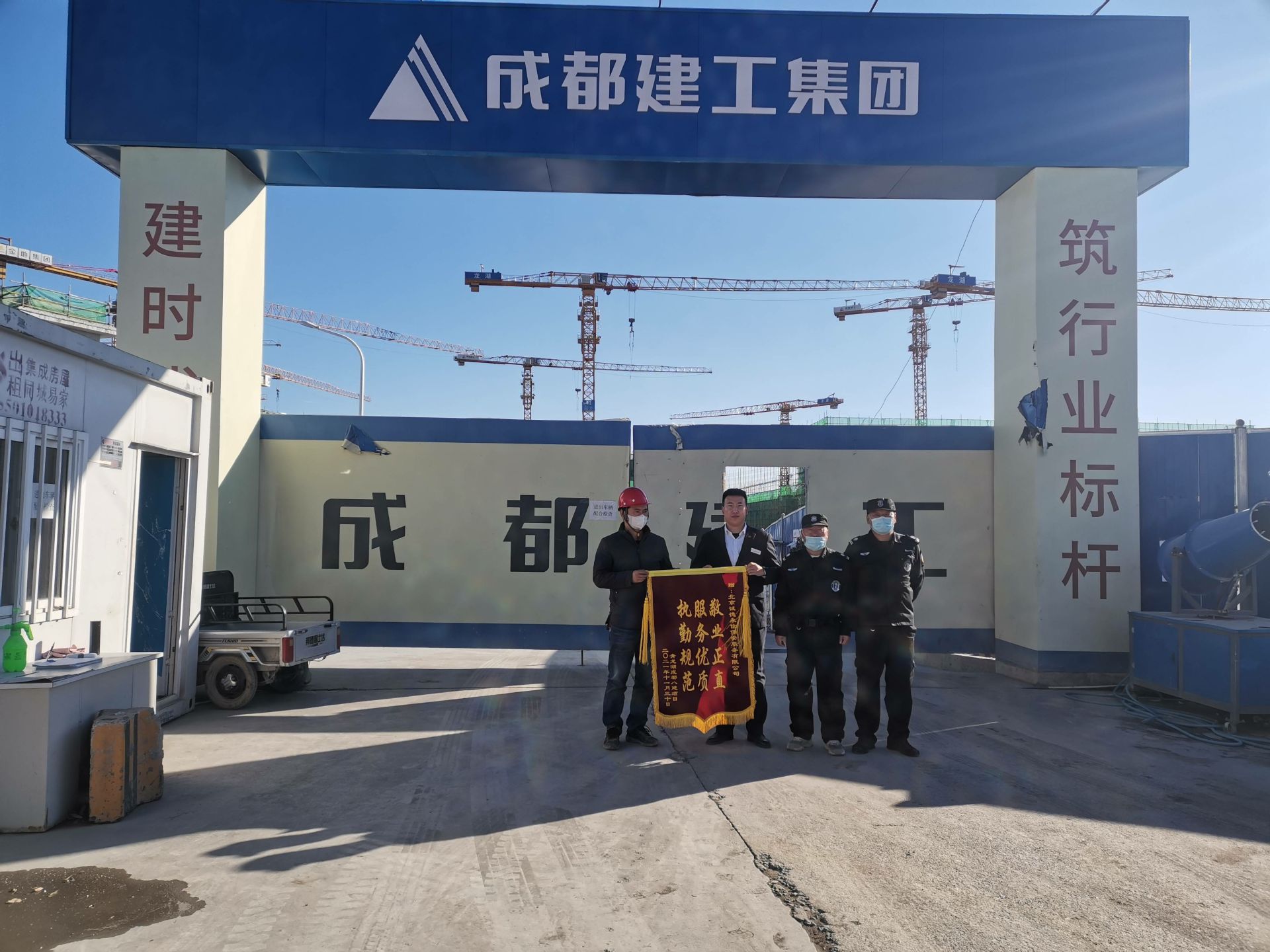 2021年11月30日,我司驻青龙湖成都建工第八建筑工程有限公司房山分公司保安队收到甲方赠予的锦旗“ 执勤规范 服务优质 敬业正直”。